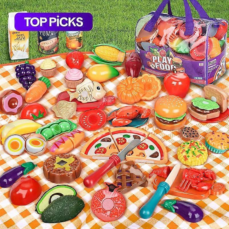 Pretend Play Kitchen Food Toy, Play Kitchen Accessories, 78pcs/set Simulation Food & Cutting Fruit & Vegetable Toy, Kitchen Pretend Play Toy