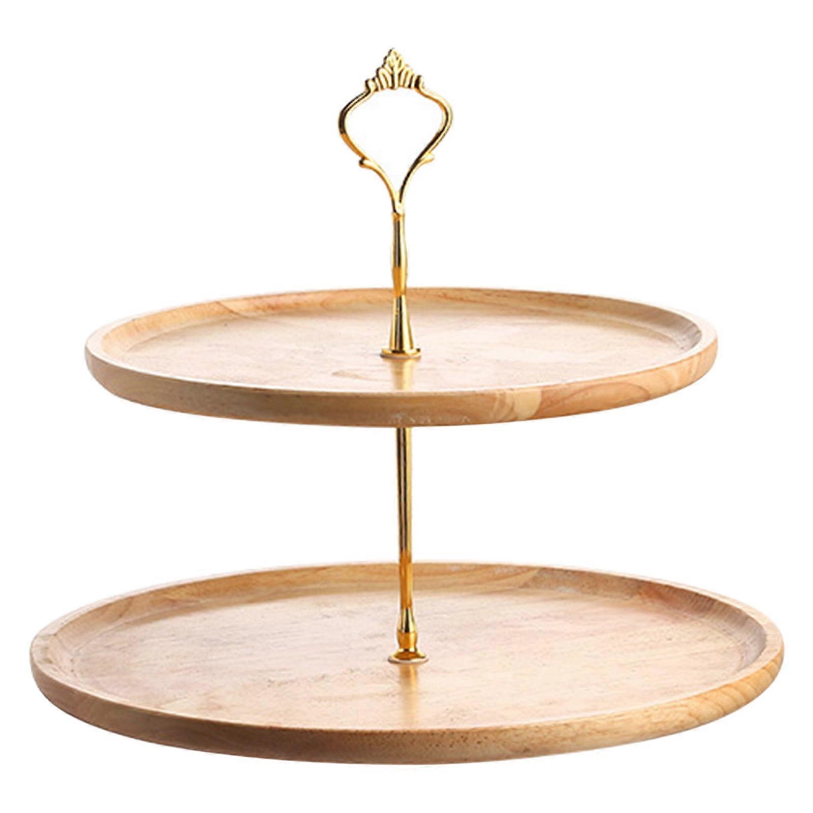 Zeceouar Wooden Fruit Tray, Double-Layer Cake Stand for Desserts & Home Decor - Wood Color, compatible with cake display needs