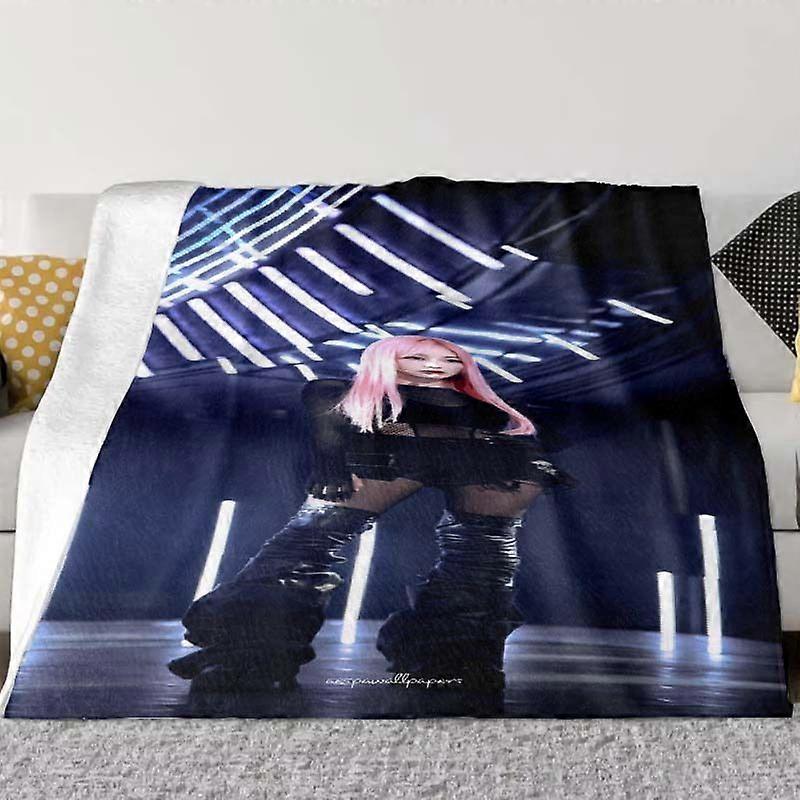 Giselle Pink Long Hair Neon Light Background Fashionable Thick Warm Blanket, Suitable for Sofa, Office Bed, Camping, All-AZXCV56