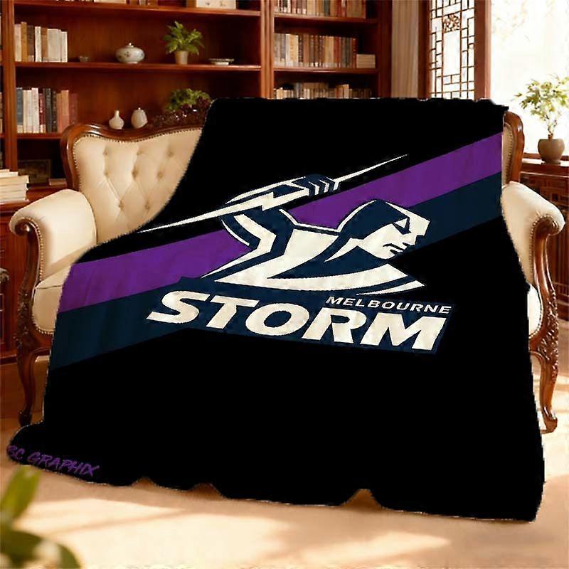 Melbourne Storm Lightning Logo Blanket - All-Season Soft Flannel Bedspread with Iconic Team Logo, Lightning Bolt Design -AZXCV103