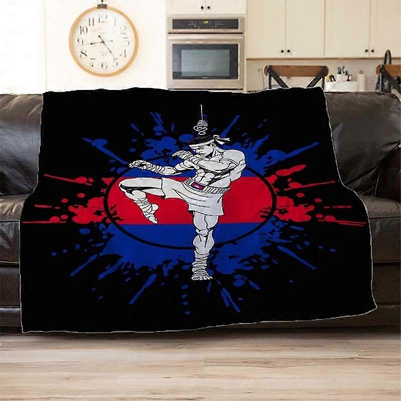 Kun Khmer Red Splash Ink Background Illustration Blanket with Pop Culture Print, Suitable for Living Room, Office Sofa D-AZXCV245