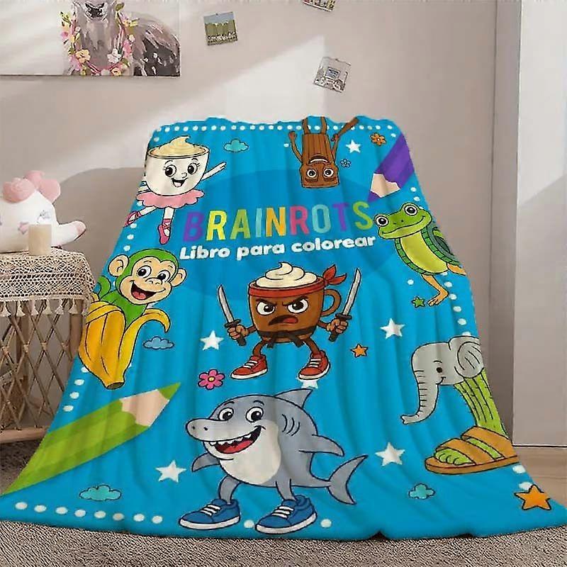 BRAINROTS Creative Coloring Book Themed Blanket - Soft Flannel Noodle Design with Cartoon Characters, All-Season Cozy Th-AZXCV239