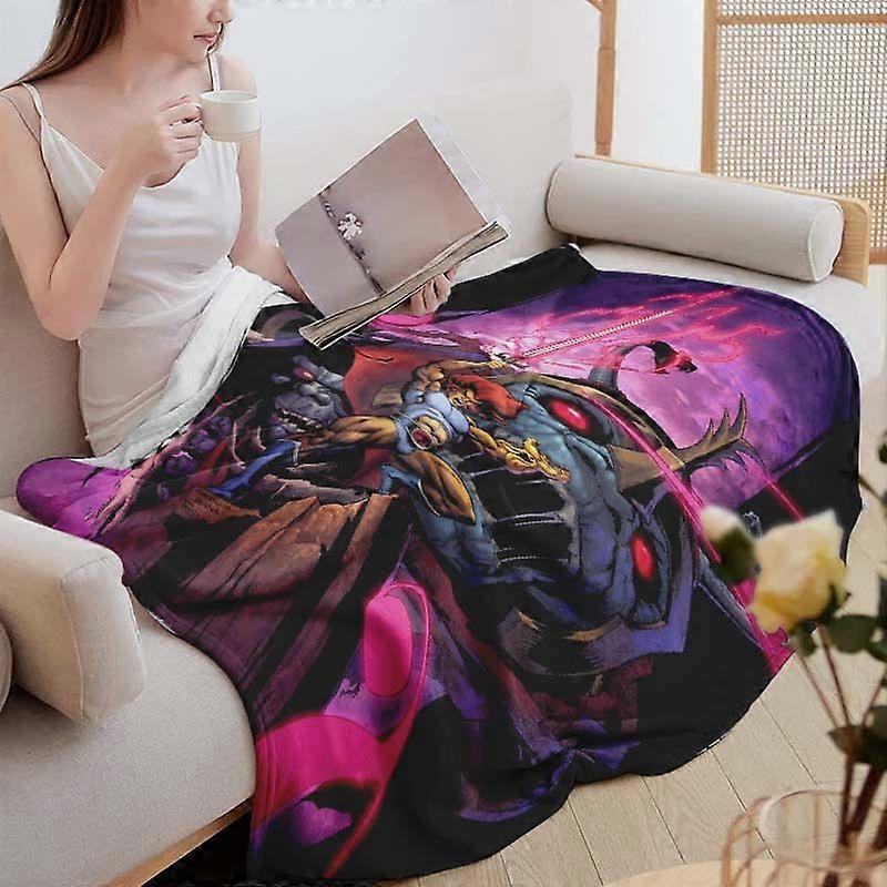 Thundercats Retro 80s Anime Blanket with WilyKit, WilyKat, Snarf & Lion-O - Soft Flannel All-Season Throw for Bed, Couch-AZXCV345