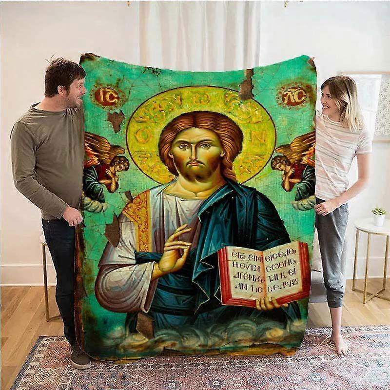 Orthodox Christian Jesus Christ Icon Throw Blanket - Soft Polyester Fleece All-Season Religious Bedspread with Jesus Ble-AZXCM18