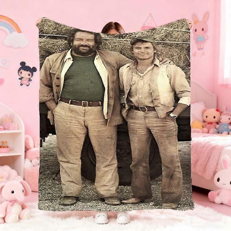 Bud Spencer & Terence Hill Iconic Duo Photo Blanket - Soft All-Season Western Movie Star Bedspread for s &, Italian Conn-AZXCM8