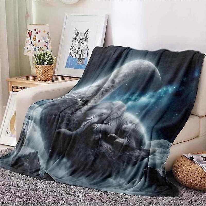 Elephant & Mother Elephant Moon & Stars Night Sky Flannel Blanket - All-Season Soft Bedspread for Bed, Sofa, Camping - C-AZXCM98