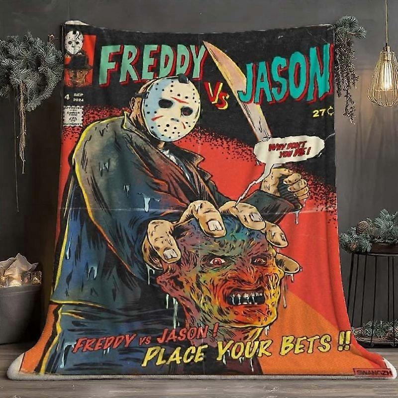 Freddy vs. Jason Horror Movie Throw Blanket - Freddy Krueger vs. Jason Voorhees Battle Scene - Soft Flannel All-Season C-AZXCM414