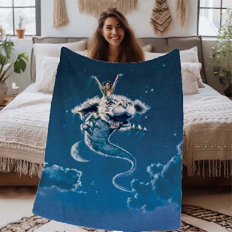 The NeverEnding Story Movie Blanket - Luxurious Flannel All-Season Soft Throw with Bastian & Falken Fantasy Design, Icon-AZXCM438