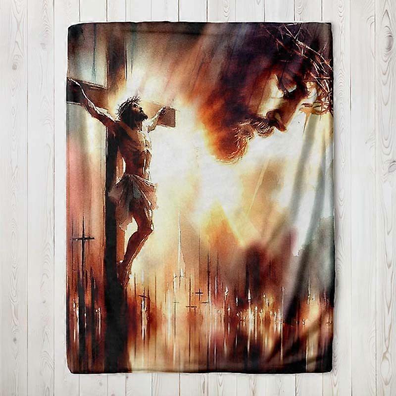 The Crucifixion of Christ on the Cross with Sacred Light Warm Tones Blanket, Lightweight Texture, Suitable for Bed, Sofa-AZXCM245