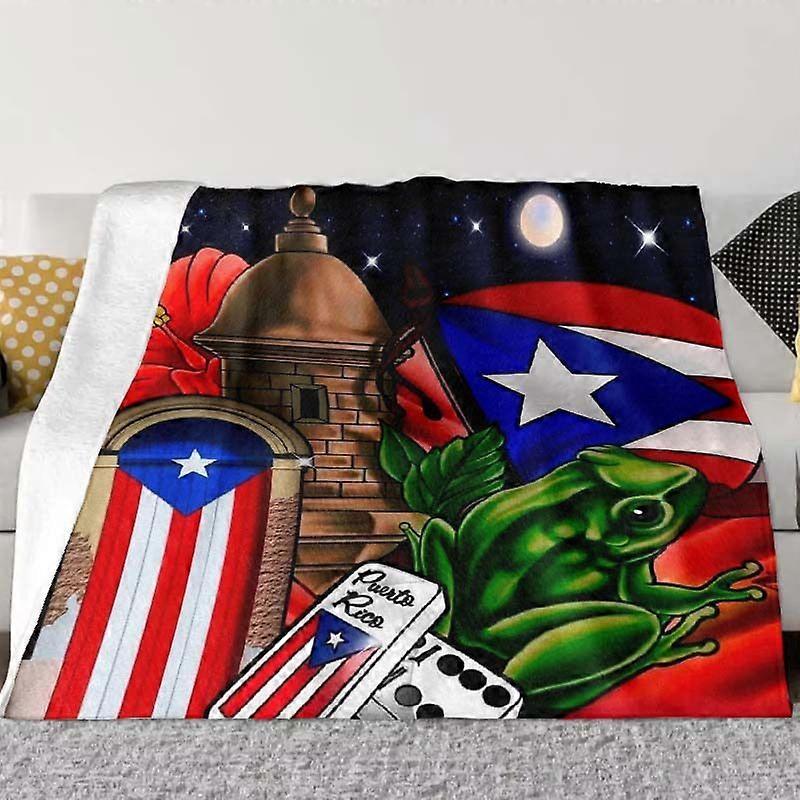 Puerto Rico Cultural & Natural Beauty Art Throw Blanket - Vibrant Tropical Design with Coconut Tree, Palm Leaves & Mount-POIUY102