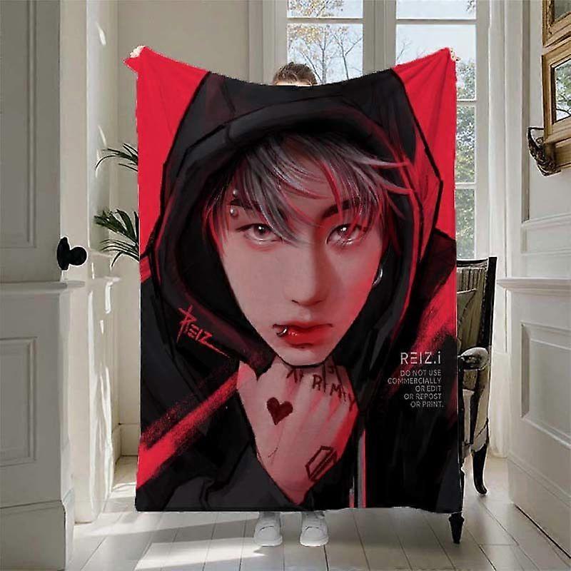 Jeon Jeongguk Red Background Digital Art Illustration Hoodie Blanket with Pop Culture Print, Perfect for Living Room, Of-AZXCM389