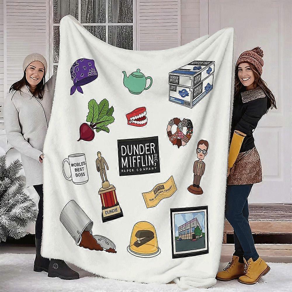 The Office TV Show Themed Blanket - Iconic Dunder Mifflin Logo, Dwight's Desk & Characters (Jim, Pam, Michael) - Soft Al-POIUY214