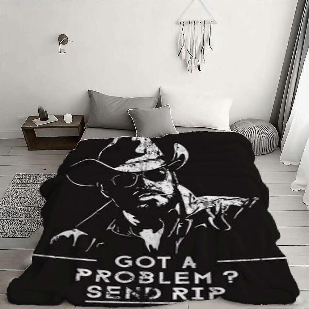 Western Cowboy Graphic Fleece Blanket - Soft Flannel All-Season Bedspread with Cowboy Hat & "Got a Problem? Send Rip" Sa-POIUY245
