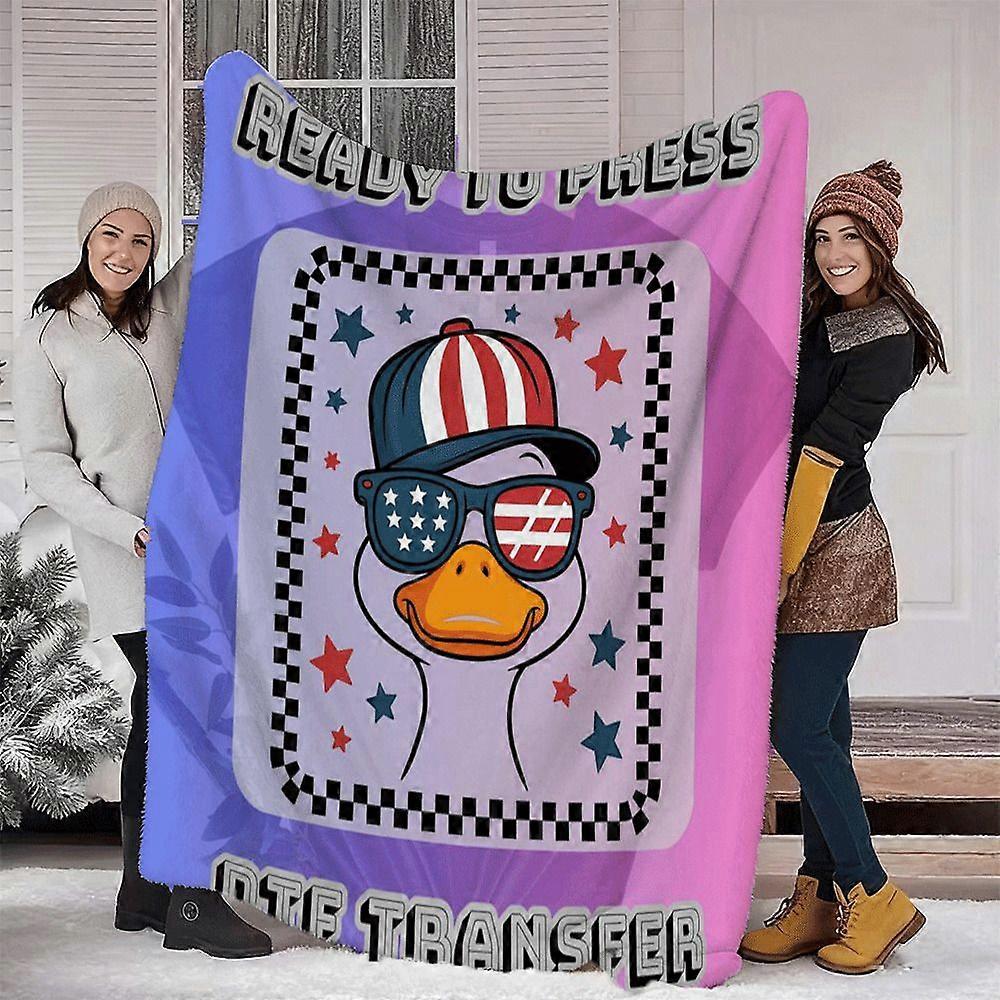 Cartoon Duck American Flag Glasses Hat Pattern Digital Print Flannel Blanket, Simple Spread, Durable and Wrinkle-Resista-POIUY331