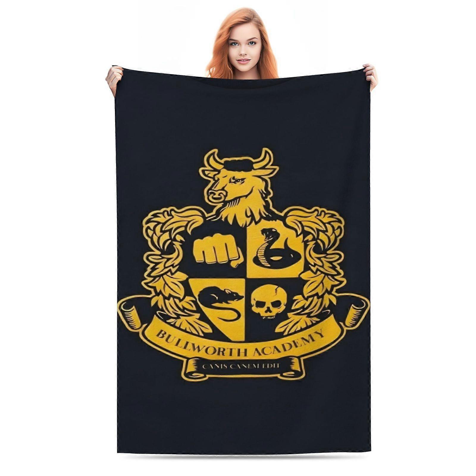 Oxford Academy Gaming Blanket - Bullworth Academy Designer - Heavyweight Flannel All-Season Soft Throw - Black & Golden -POIUY355