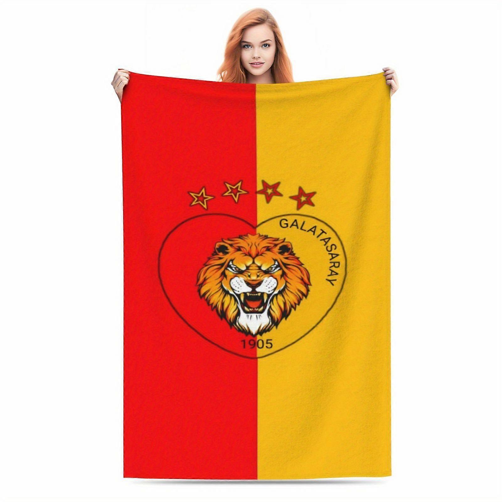 Galatasaray FC Emblem Fleece Blanket - Soft Polyester Art Print with Lion Emblem, Red & Yellow Stripes, 200-250gsm All-S-POIAS53