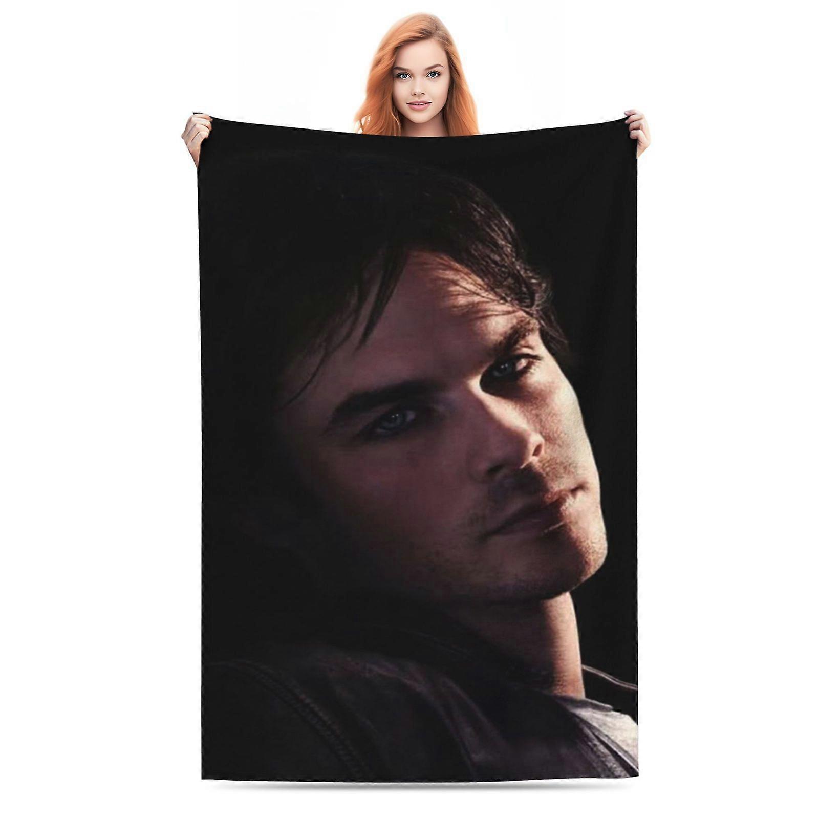 Men's Face Print Fleece Blanket - Dark Brown/Black/Gray/White/Beige - Soft Flannel All-Season Bedspread for Couch, Bed, -POIAS123
