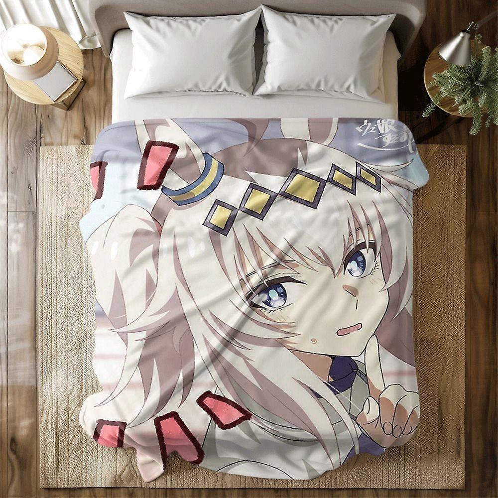 White-Haired Anime Girl Digital Print Flannel Blanket - Soft Light Beige-Friendly All-Season Bedspread with Expressive E-POIAS139