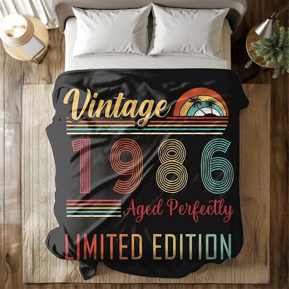 1986 Vintage Limited Edition Flannel Blanket - Retro 80s Throw with Neon Colors (Orange, Teal, Black, Brown, Beige, Gray-POIAS118