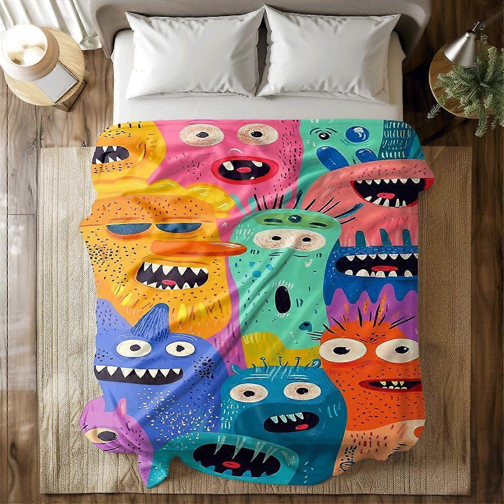 Cartoon Monster Digital Print Flannel Blanket - Ultra-Soft, Perfect for Home, Office, Car & Camping | Cozy and Versatile-POIAS196