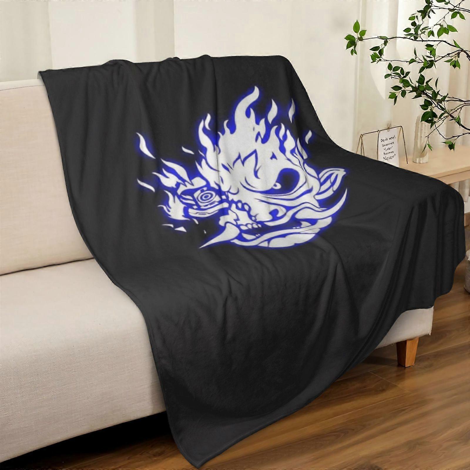 Flame Blanket - Soft Flannel Throw with Blue Flames, All-Season Couch Bedspread for Home, Camping, Travel - Machine Wash-POIAS252