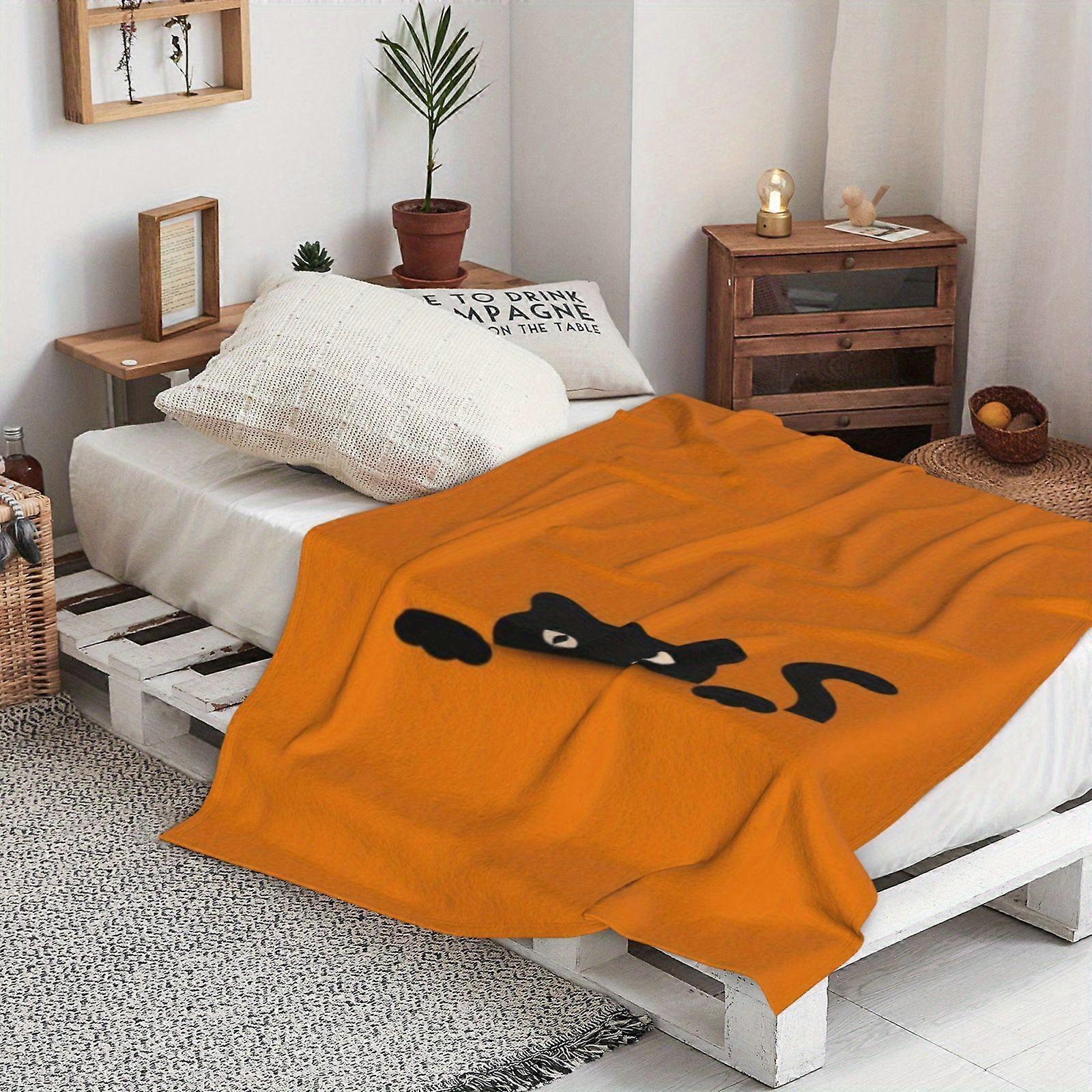 Black Cat on Orange Background High-Definition Printed Flannel Blanket, Suitable for Sofa, Bed and Chair Use All Seasons-POIAS268
