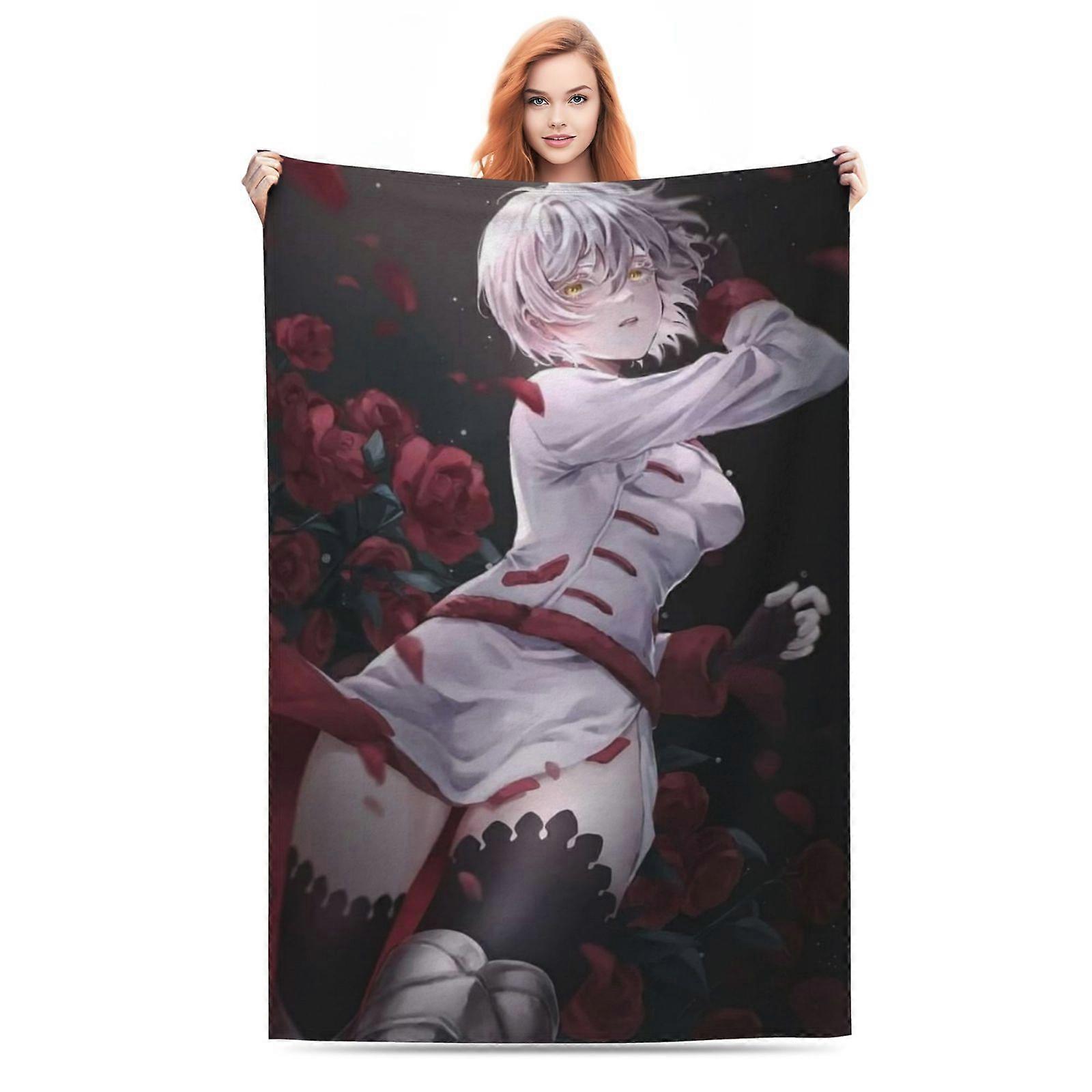Rose Girl Anime-Style Flannel Blanket - Ultra-Soft 100% Polyester, All-Season Cozy Throw with Vibrant Digital Print, Mac-POIAS320