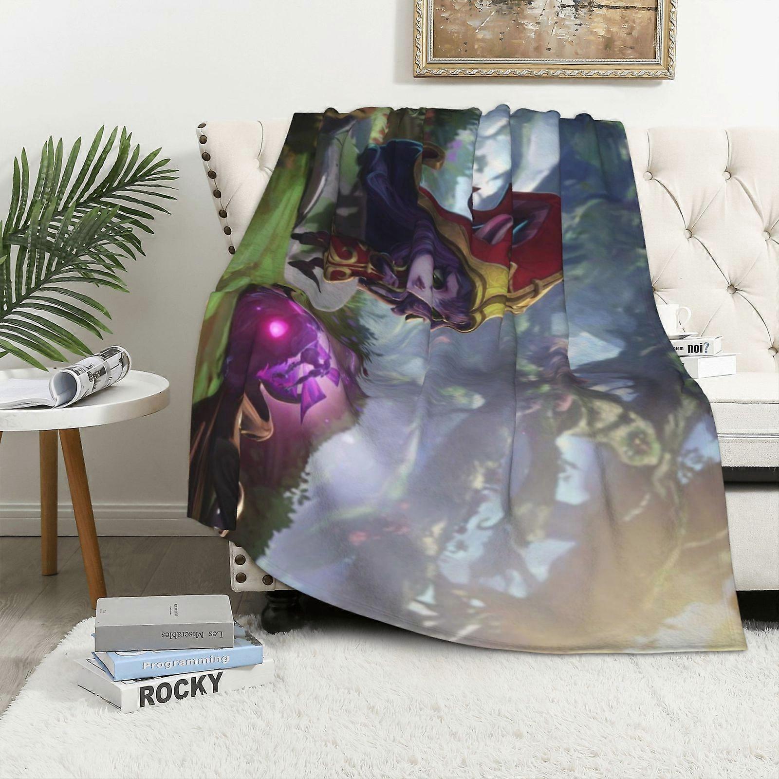Elbow & Tree Elf Fantasy Blanket - Soft Flannel Throw with Purple & Green Elf Design, All-Season Cozy Bedspread for Home-POIAS372