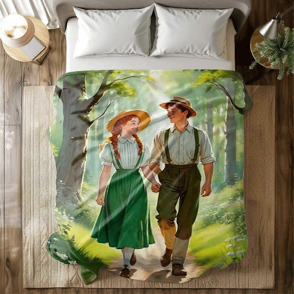 Anime-Themed Flannel Blanket - Soft Polyester, All-Season Use, Ideal for Napping & Travel, Perfect Gift for Anime Fans, -POIAS377