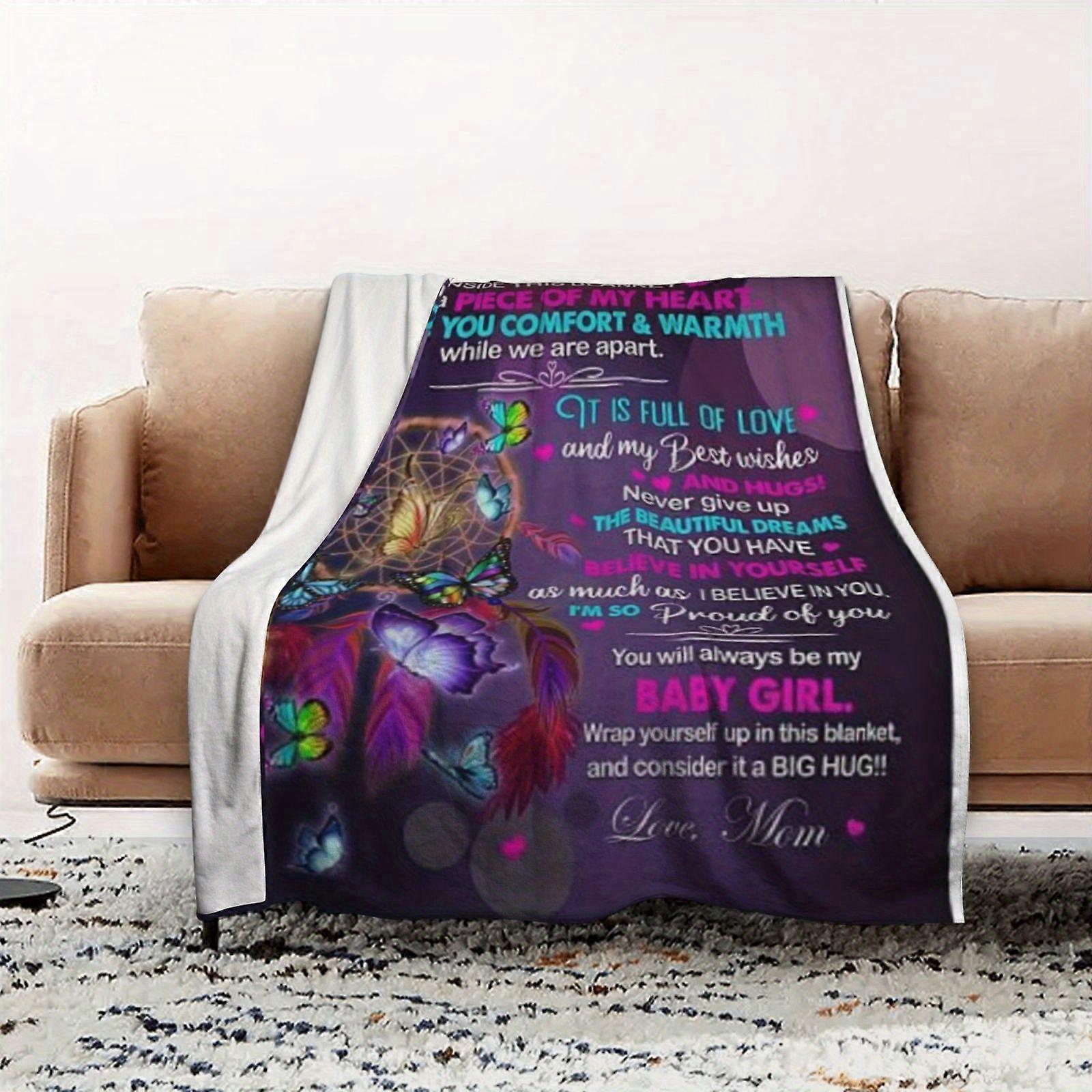 Daughter's Love Heart Blanket, HD Printed Flannel Blanket for All Seasons, Thick Polyester Fabric - Machine Washable - S-POIAS443