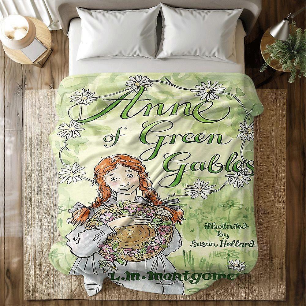 Anne of Green Gables Flannel Blanket - Soft Plush All-Season Bedspread with Anne Shirley & Green Gables Design, Cozy Bed-EDFGH43