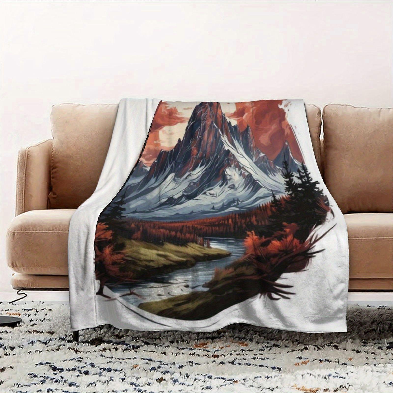 Snowy Mountains and Forests at Sunset HD Printed Flannel Blanket, Comfortable for All Seasons, Modern Anime Design, Ligh-EDFGH86