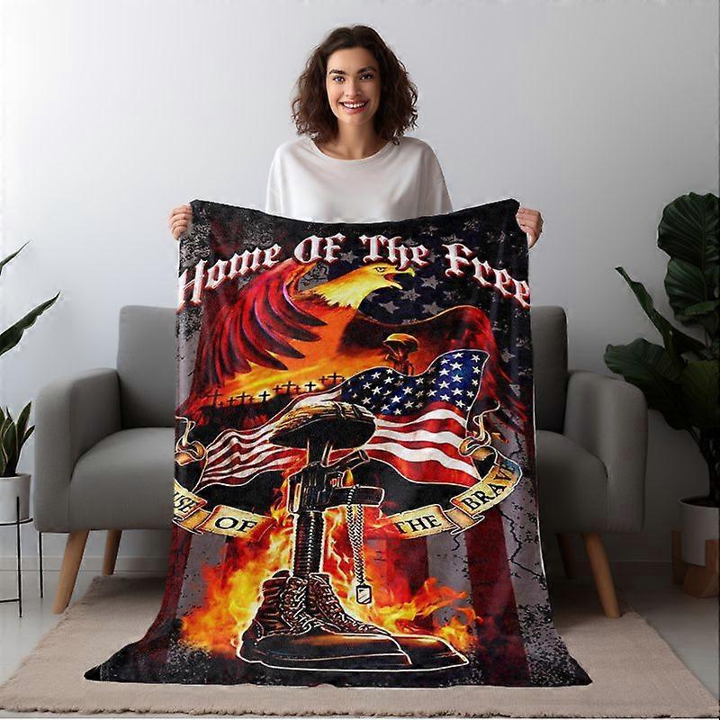 Military-Themed All-Season Throw Blanket - Heavy-Duty Flannel Sofa Couch Bedspread - Patriotic Home Decor with Army, Air-EDFGH216
