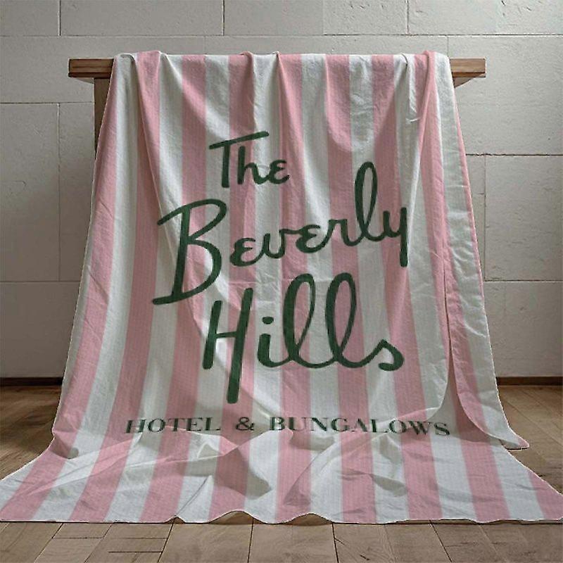 Beverly Hills Luxury Hotel Pink and White Striped Classic Decorative Poster Blanket Thick and Warm, Suitable for Sofa, O-EDFGH232