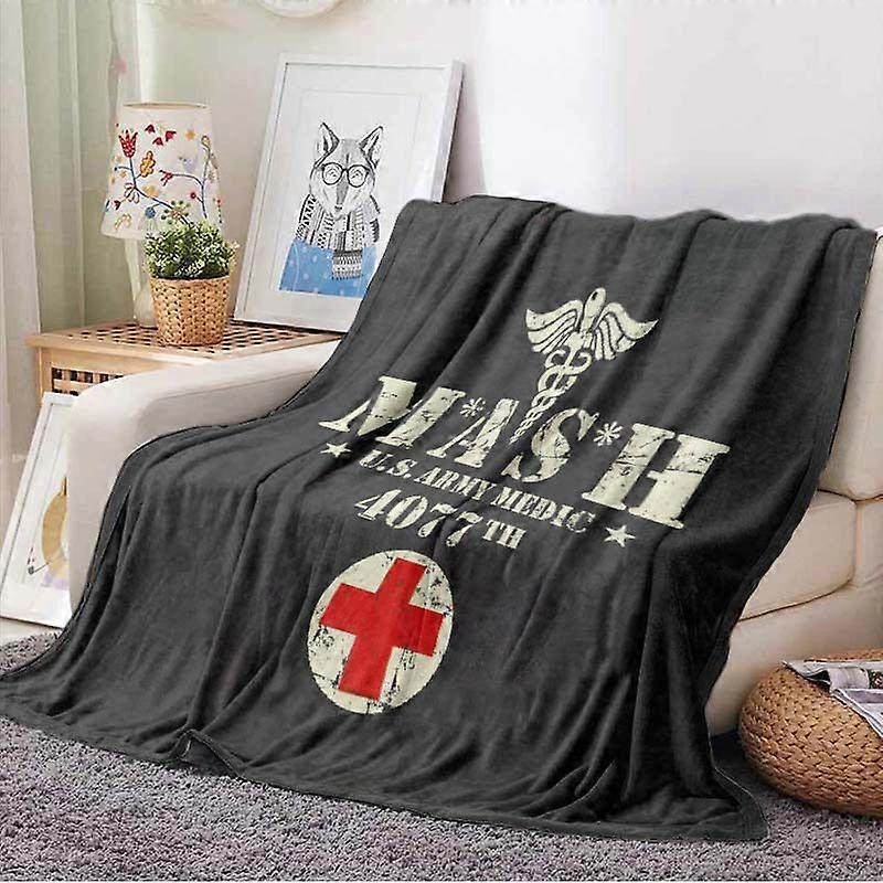 MASH TV Show Inspired Medical Blanket - MASH 4077th Army Medical Corps Design with Snake Staff & MASH Lettering - All-Se-EDFGH315
