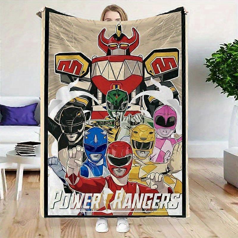 Power Rangers Anime Print Flannel Blanket - Soft All-Season Throw for Sofa, Office & Travel, Vibrant Character Design, D-EDFGH359