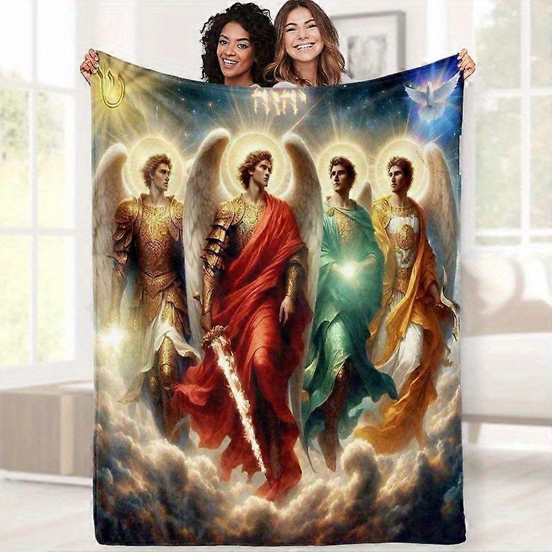 Four Angels Theme Print Flannel Blanket - Comfortable and Lightweight, Suitable for Bed, Sofa, Camping, Office, Travel a-EDFGH409