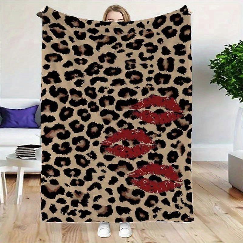 Sexy Leopard Print & Lip Print Flannel Throw Blanket - Soft, Cozy All-Season Home Decor for Office, Sofa, and Bed, Perfe-FDSAP18