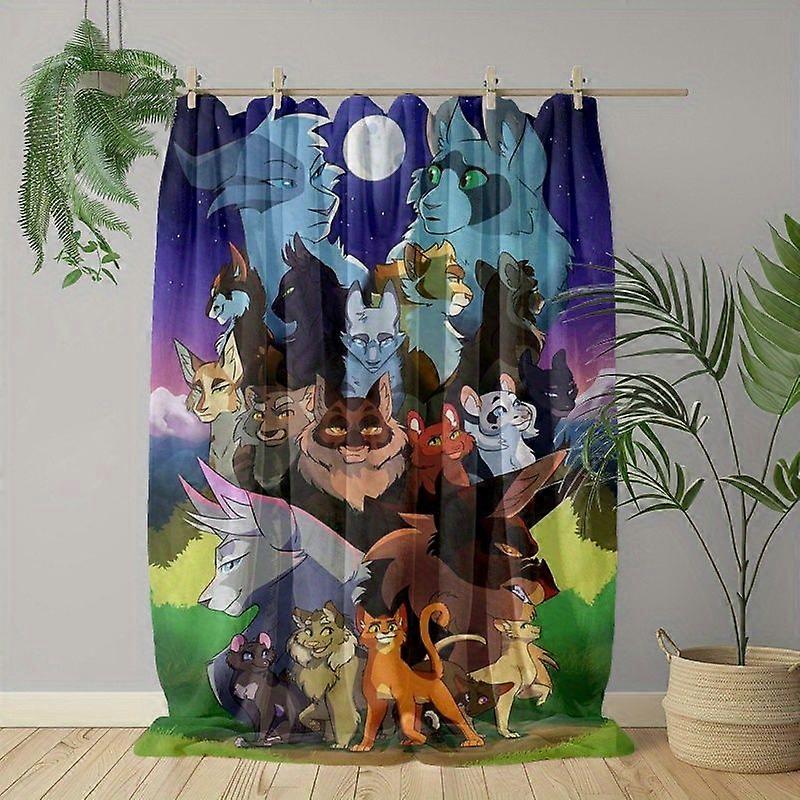 Cat Warrior Cartoon Inspired Print Flannel Throw Blanket - Cozy All-Season Comfort for Bed, Sofa, Travel, Camping - Unis-FDSAP71