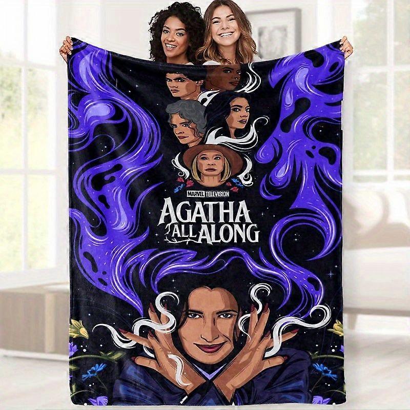 AGATHA ALLALONG Themed Flannel Blanket - Soft Warm Polyester All-Season Throw with Mystical Anime Art, Purple Swirl & Fl-FDSAP75