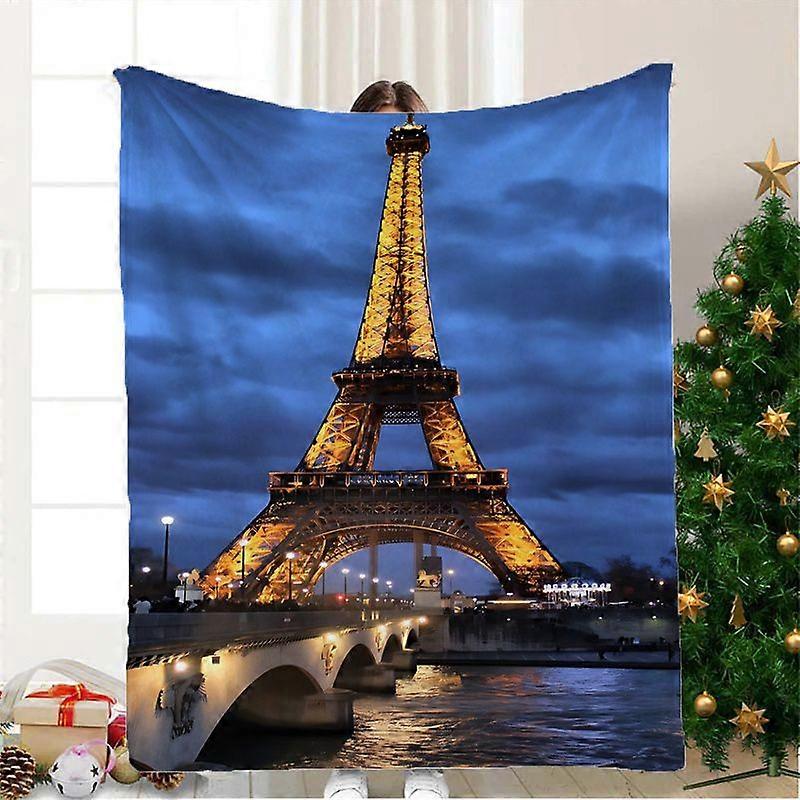 Parisian Eiffel Tower Print Flannel Blanket - Cozy All-Season Throw with Vibrant Cityscape Design, Perfect for Living Ro-FDSAP164