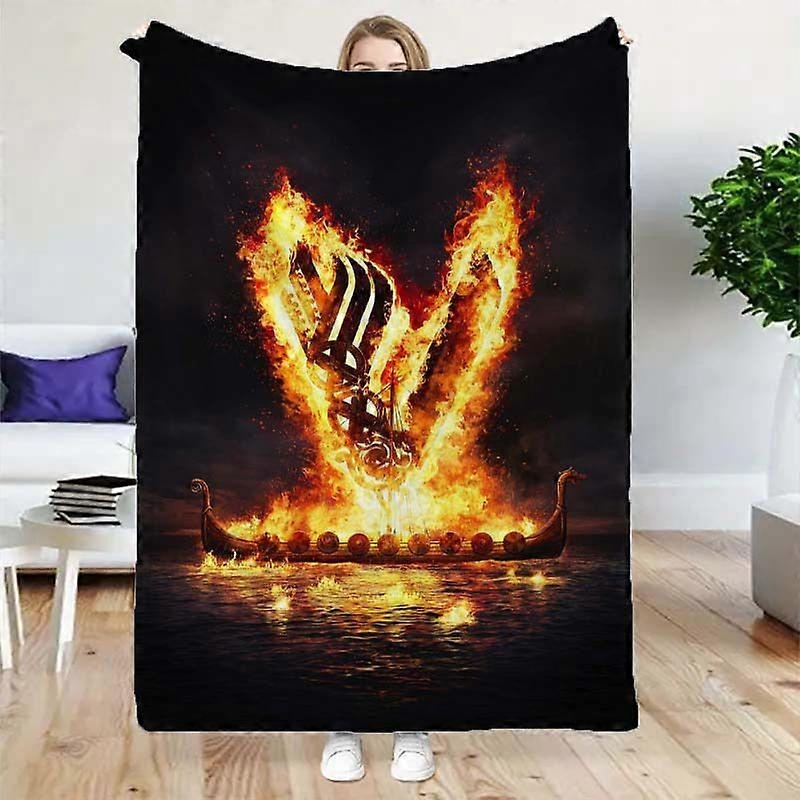 Viking Print Flannel Blanket - Bedding, Suitable for Sofa, Travel, Camping, Nap, Home Decoration, All Season Gift-FDSAP341