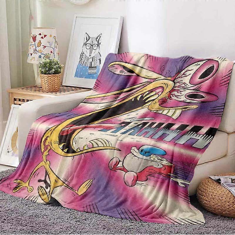Ren & Stimpy Show Swim TV Series Blanket - Iconic Characters (Ren, Stimpy, George Liquor) Soft Flannel Bedspread for Cou-FDSAP419