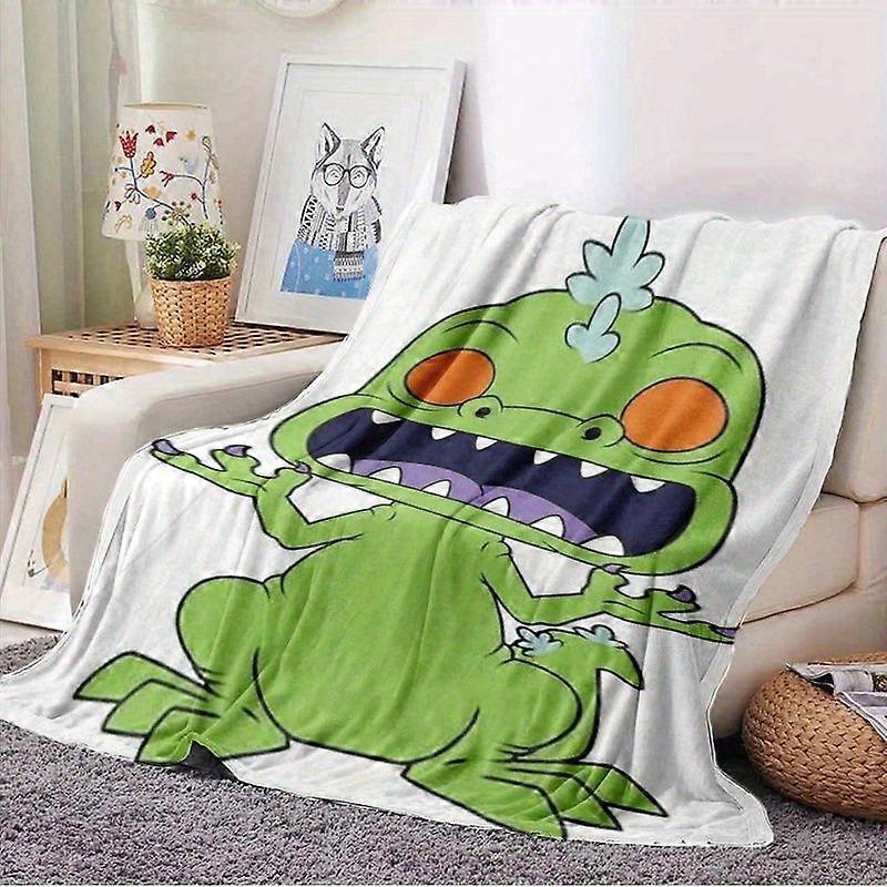 Cartoon Lizard Print Flannel Blanket - Soft All-Season Cozy Throw for Couch, Office & Travel, Vibrant Green & Orange Des-LKJAS12