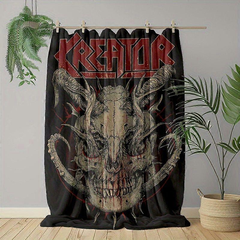 Gothic Creator Skull Print Flannel Blanket - Black with Red & White Graphic Design - Cozy All-Season Throw for Bed, Car,-LKJAS83