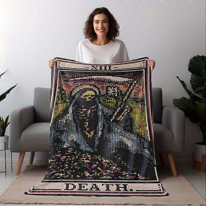 Tarot XIII Death Card Throw Blanket - Gothic Tarot Design Flannel - Dark Gothic Decor with Skeleton Reaper - All-Season -LKJAS70