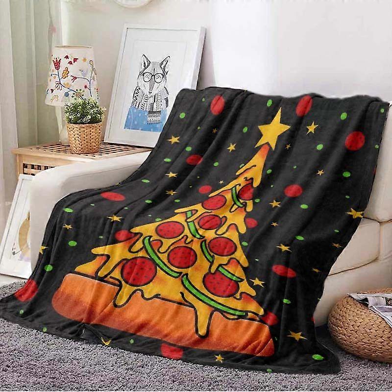 Cozy Christmas Pizza Tree Throw Blanket - Lightweight Flannel with Festive Pizza & Star Design, Perfect for Bed, Sofa, C-LKJAS97