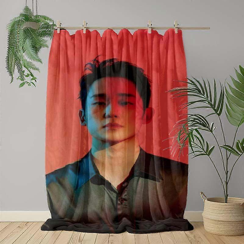 Jeong Hae-in Korean Actor Portrait Blanket - K-Drama Themed Flannel Throw with Iconic Red & Blue Design, All-Season Soft-LKJAS176