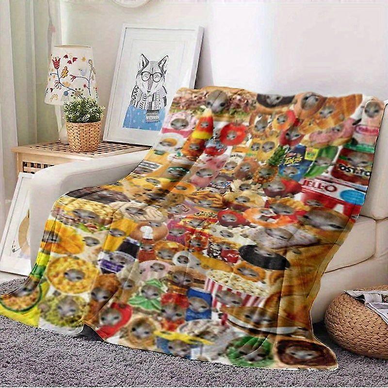Quirky Banana Kitten Print Fleece Blanket - Thick and Warm, Suitable for Sofa, Office Bed, Camping, All Seasons Gift-LKJAS120