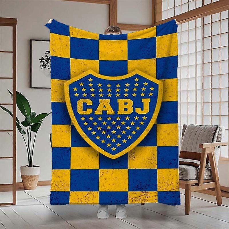 Boca Juniors Official Logo & Checkered Shield Emblem Throw Blanket - Blue & Yellow Team Colors, Lightweight Polyester, A-LKJAS198